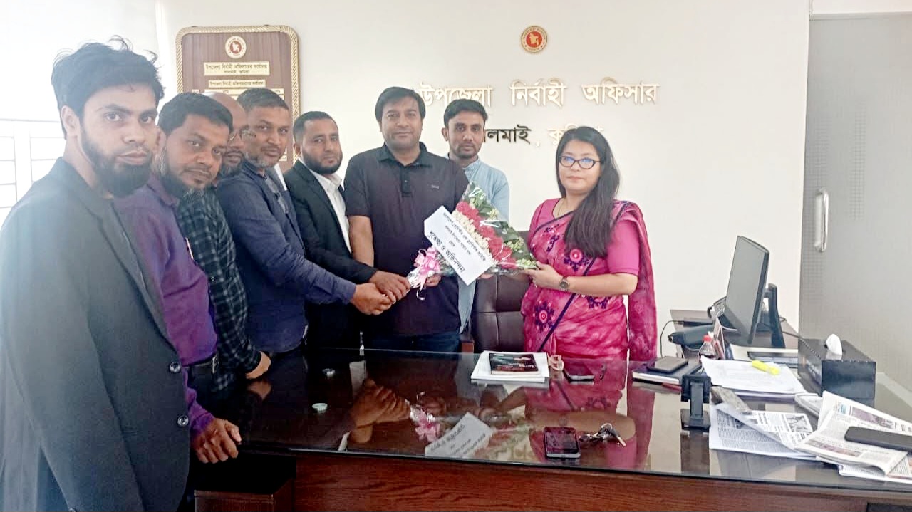 বাংলাদেশ কেমিস্টস অ্যান্ড ড্রাগিস্টস সমিতি, লালমাই উপজেলা শাখার পক্ষ থেকে উপজেলা নির্বাহী অফিসার (ইউএনও) হিমাদ্রী খীসার সঙ্গে সৌজন্য সাক্ষাৎ করেছেন সংগঠনের নেতৃবৃন্দ।