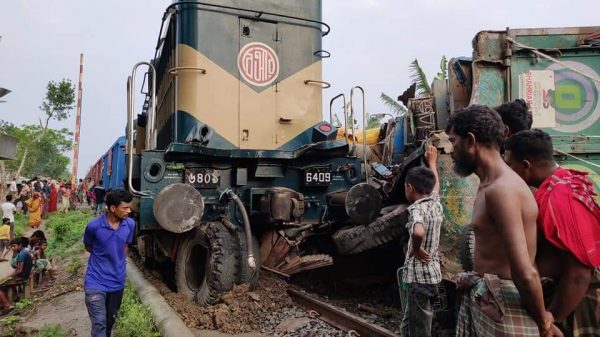 ট্রেনের ধাক্কায় পণ্যবাহী ট্রাক খাদে