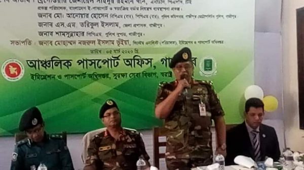 নির্বাচনী অঙ্গীকারে ডিজিটাল হলো দেশ- মুজিব বর্ষে ই-পাসপোর্ট ধন্য বাংলাদেশ’ স্লোগানে ঢাকার বাইরে প্রথম গাজীপুর আঞ্চলিক পাসপোর্ট অফিসে ই-পাসপোর্টের (ইলেকট্রনিক পাসপোর্ট) কার্যক্রম শুরু হয়েছে। বৃহস্পতিবার (০৫ মার্চ) দুপুর ১টা ৮