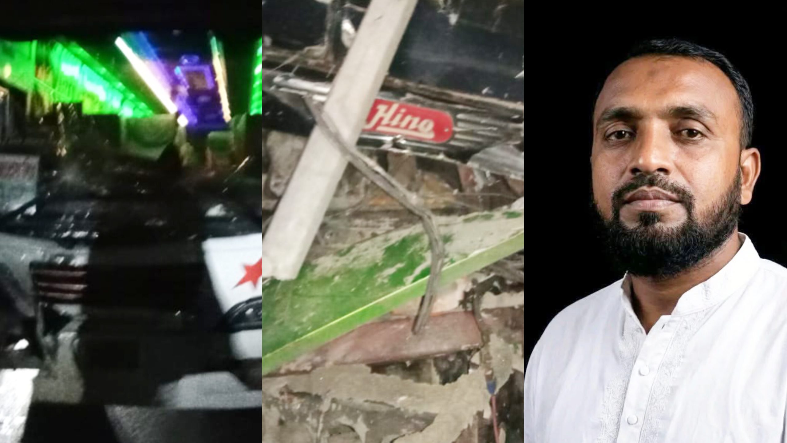 উল্লেখ্য যে, রাস্তার পশ্চিম পাশে জান্নাত ফার্নিচার এন্ড অটোবি শো-রুমের উত্তর অংশের ওয়াল ও গ্লাস ভেঙে ৩৩ হাজার ভোল্টেজের পিলার উপড়ে নিয়ে জোনাকী বাসের সামনের অংশ দুমড়ে মুচড়ে যায় এবং পিলারটি বাসের উপরে করে পিলারের উপরে অংশ বাসের ভিতরে ঢুকে যায়।জোনাকী বাসটি পিলারটি নিয়ে ৫০/৬০ গজ দূরে নিয়ে যায়।