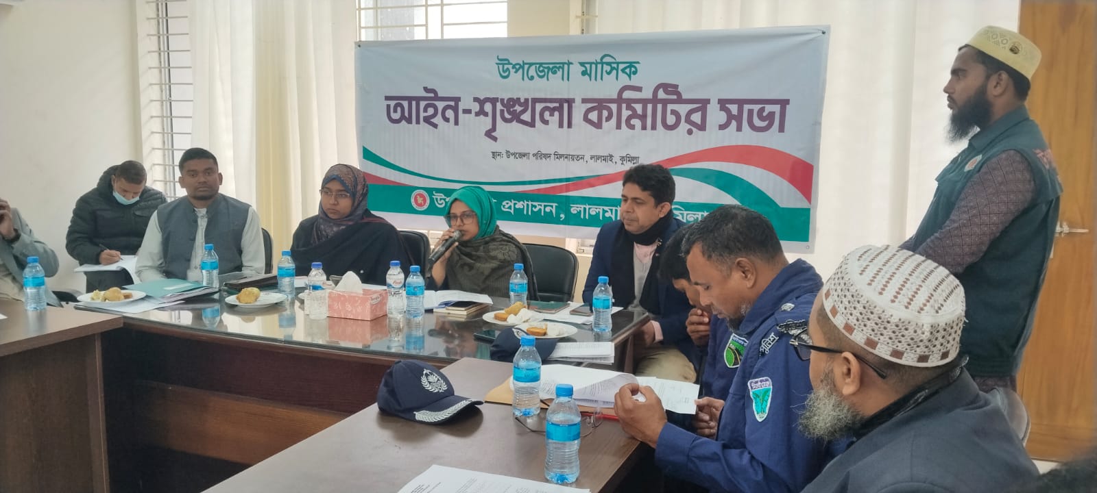 সোমবার,২৯ ডিসেম্বর, ২০২৫, বেলা ১১ টায় লালমাই উপজেলা পরিষদের সম্মেলন কক্ষে উপজেলা নির্বাহী অফিসার ও উপজেলা পরিষদের প্রশাসক উম্মে তাহমিনা মিতু এর সভাপতিত্ত্বে উপজেলা মাসিক আইন- শৃঙ্খলা সভা এবং উপজেলা পরিষদের মাসিক সাধারণ সভা অনুষ্ঠিত হয়েছে।
